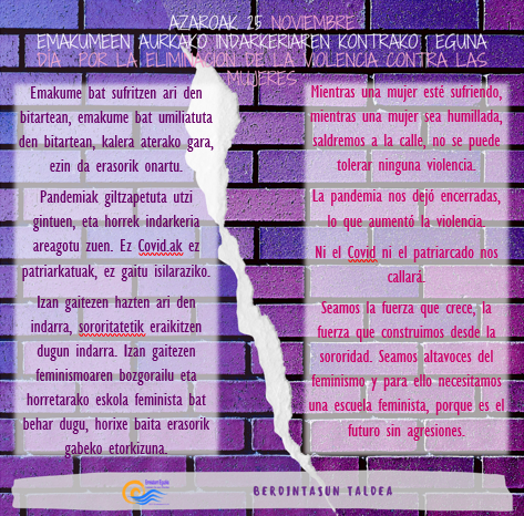 Hau da gure gaurko aldarrikapena, baita beste 364 egunetarako ere: