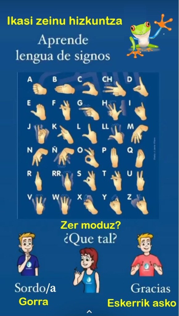 Gai al zarete zuen izena keinu hizkuntzan esateko? Har dezagun tartetxo bat seme-alabekin haien izenak edo hitz errazak ikasteko!
