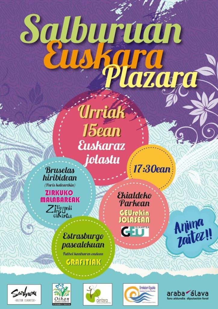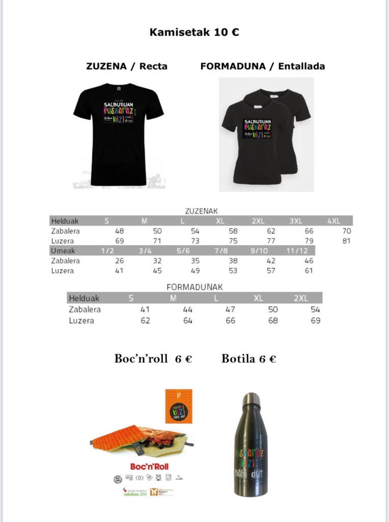 Euskarak inoiz baino laguntza eta bultzada handiagoa behar du. Eta horretan lagundu nahirik, auzoko hiru Guraso Elkarteak eta Sarburu Kultur elkartea batuta Euskararen egunerako kamiseta eta osagarrien eskaintza egin nahi dizuegu.
